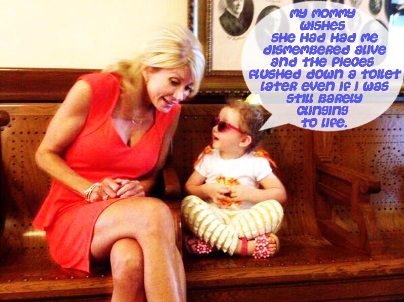 It’s worse than that, it’s “My mommy wishes she had had me dismembered alive and the pieces flushed down a toilet later even if I was still barely clinging to life.” “Mommy likes her poop more than she does me.”